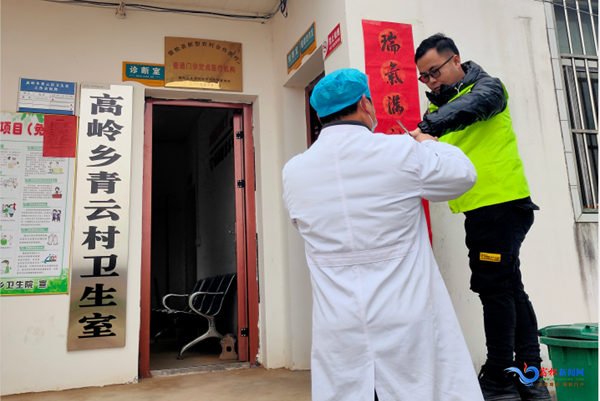 “今天天志愿者為我們送來了春聯(lián),心里感到非常溫暖。作為醫(yī)務工作者一如既往地做好疫情防控工作,為老百姓的健康服務。”高嶺鄉(xiāng)青云村衛(wèi)生室室長的唐軍高興地說。高嶺鄉(xiāng)團委書記何東亮表示:“今天我們開展寫春聯(lián)送春聯(lián)活動,既為因疫情影響不能回家過年的家庭和在抗疫前線的志愿者們送上新春祝福,又弘揚了書法之美,傳承了春節(jié)文化,也將黨和政府關注民生的心聲送到老百姓的心上。”(融媒體記者 田周群 通訊員 黃勻勻)